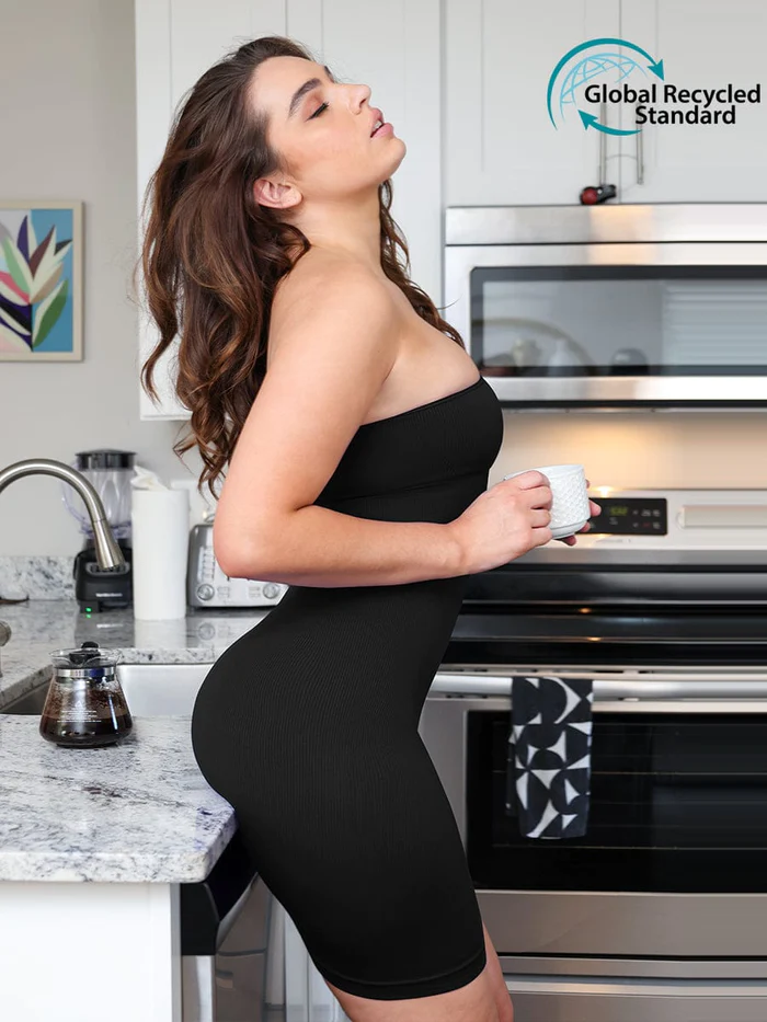 Este vestido modelador é feito de um material elástico e confortável que se adapta a qualquer corpo. Ele define a sua silhueta e realça o seu bumbum, fazendo com que você se sinta confiante e bonita.